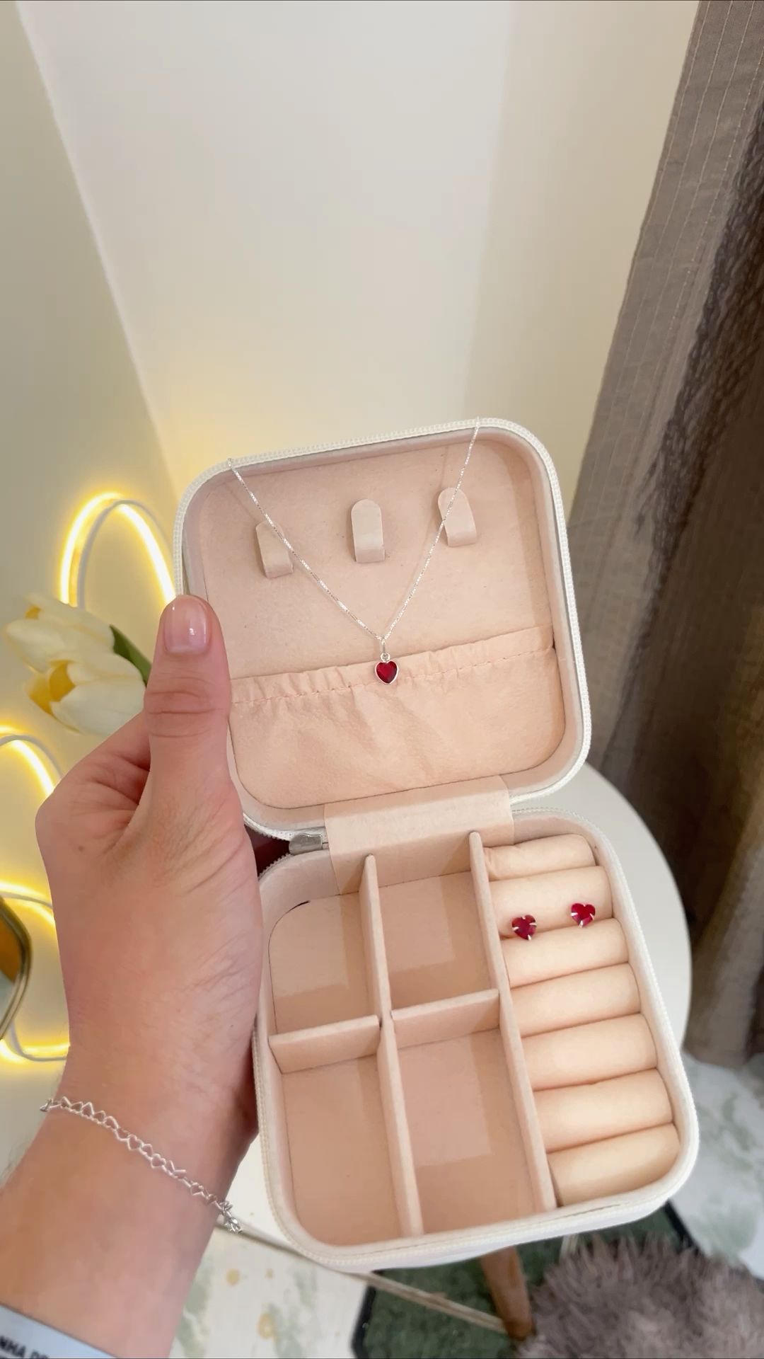 Gardez vos bijoux bien organisés et à l’abri grâce à cette jolie boîte rose, pratique et tendance.