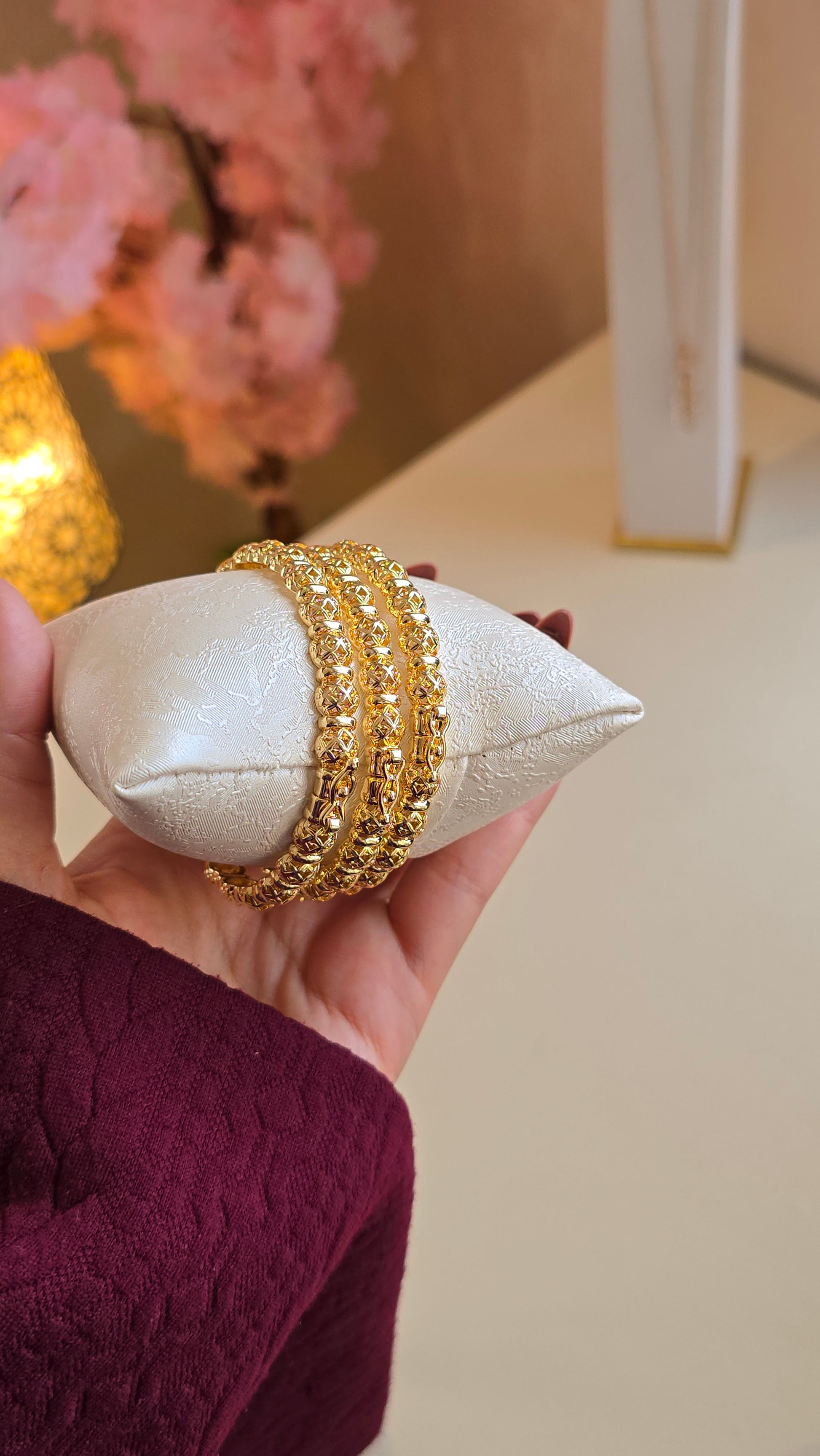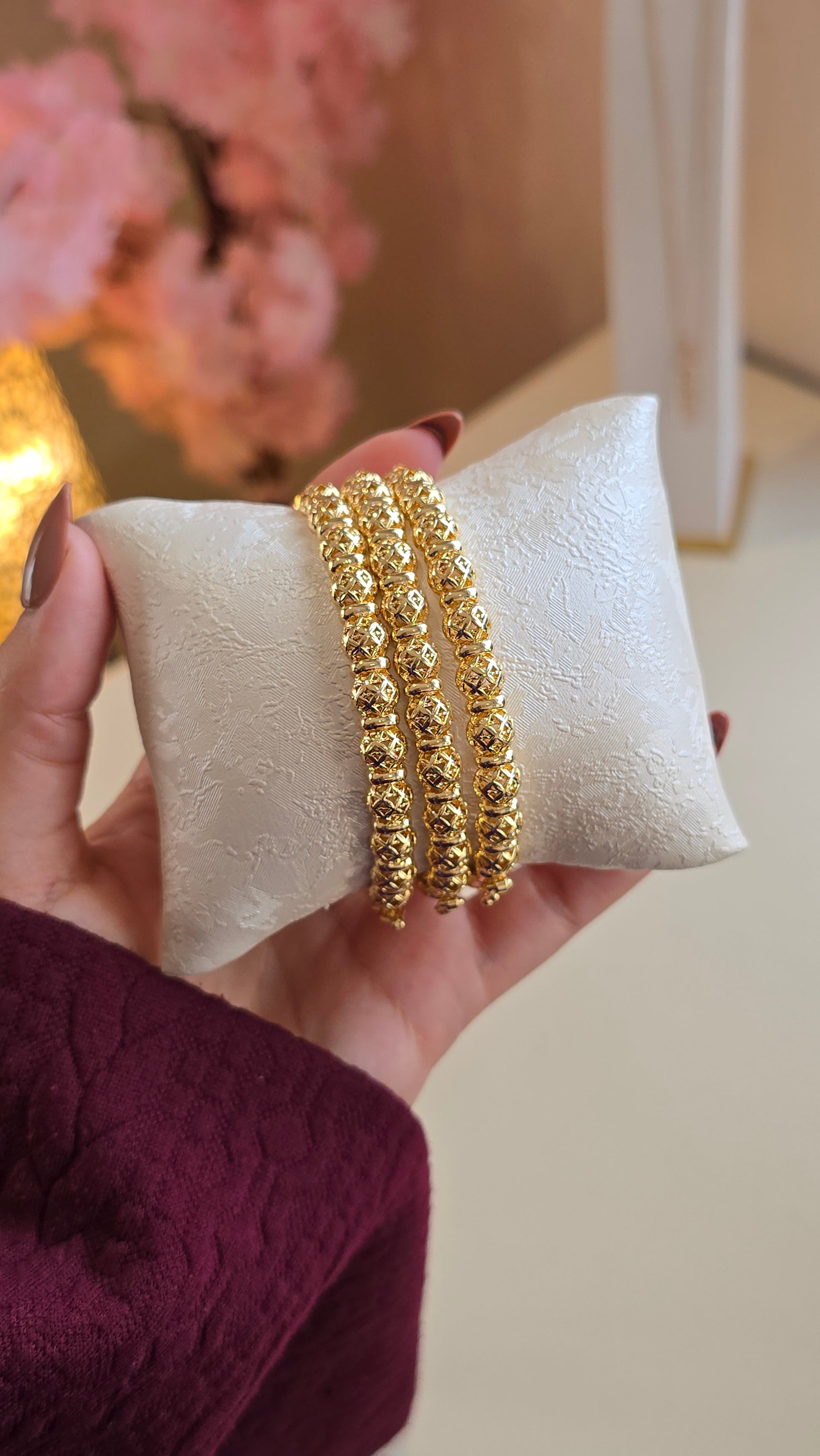 Trio de bracelets au design inspiré de l’or, avec une finition brillante et raffinée — parfaits pour sublimer vos looks au quotidien.