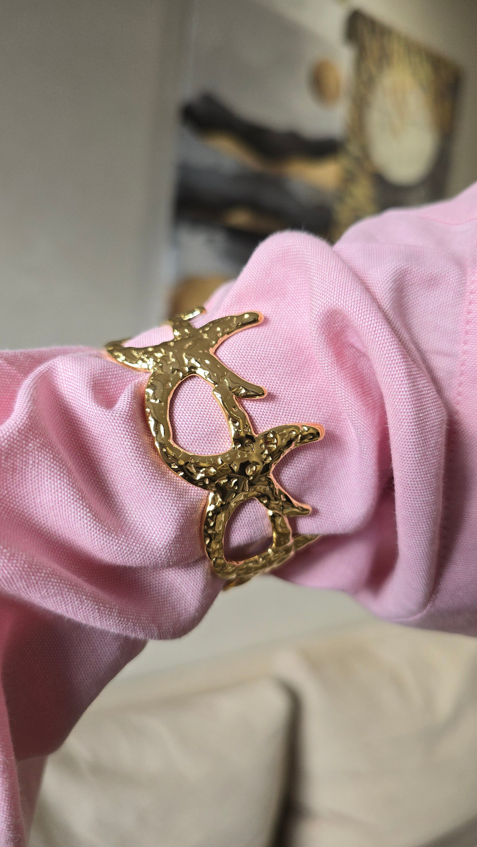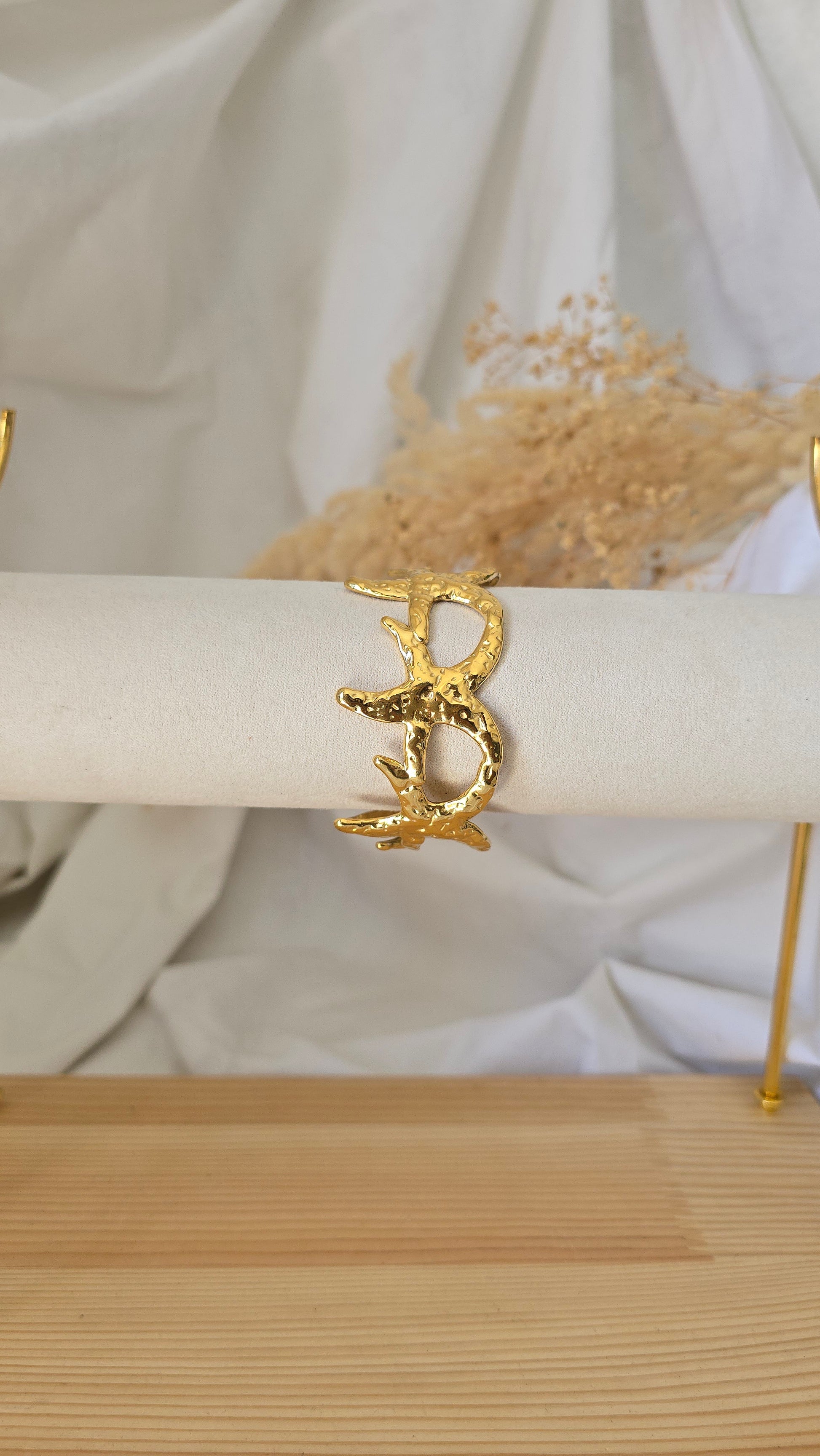 Plonge dans les vibes de l’été avec ce bracelet manchette doré au design inspiré des coquillages et étoiles de mer.
