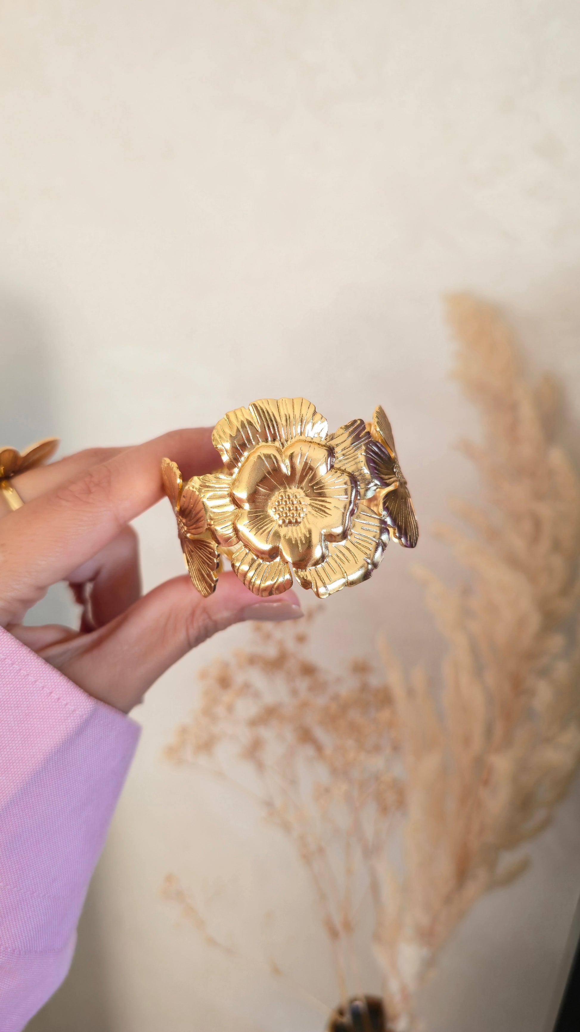 🌸 Bracelet Manchette taille ajustable – Acier inoxydable