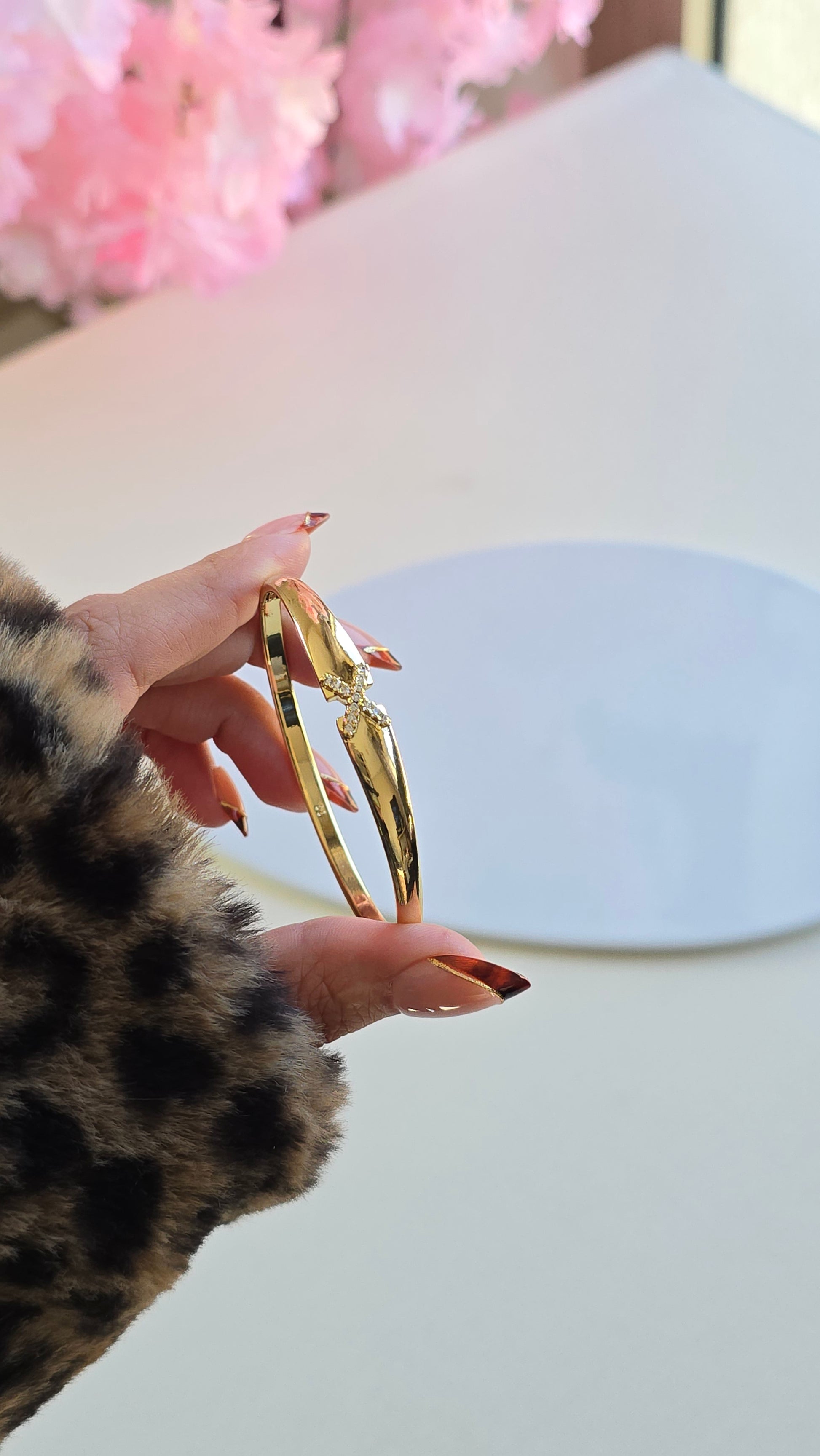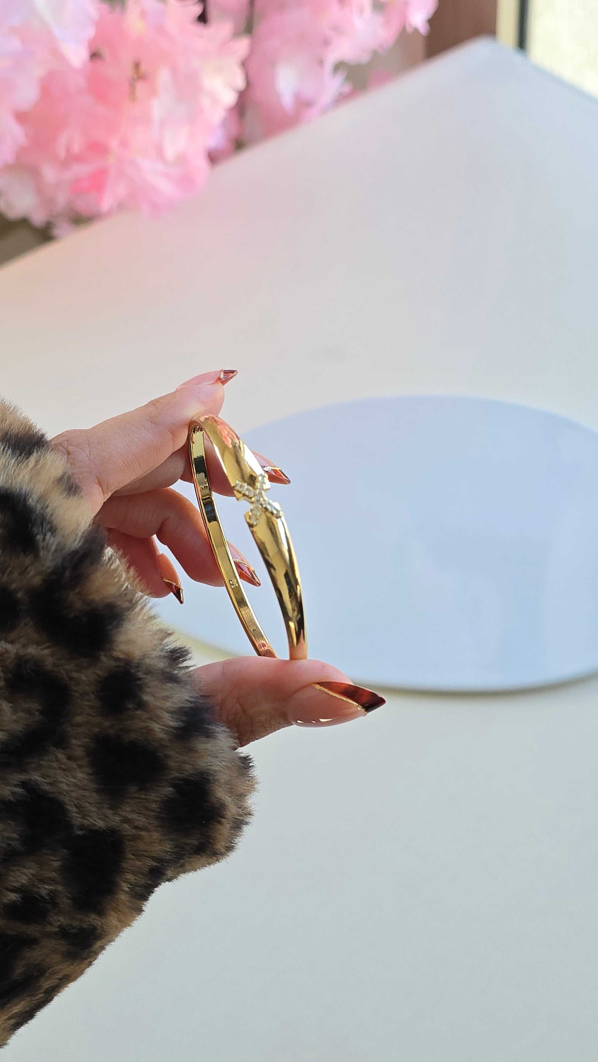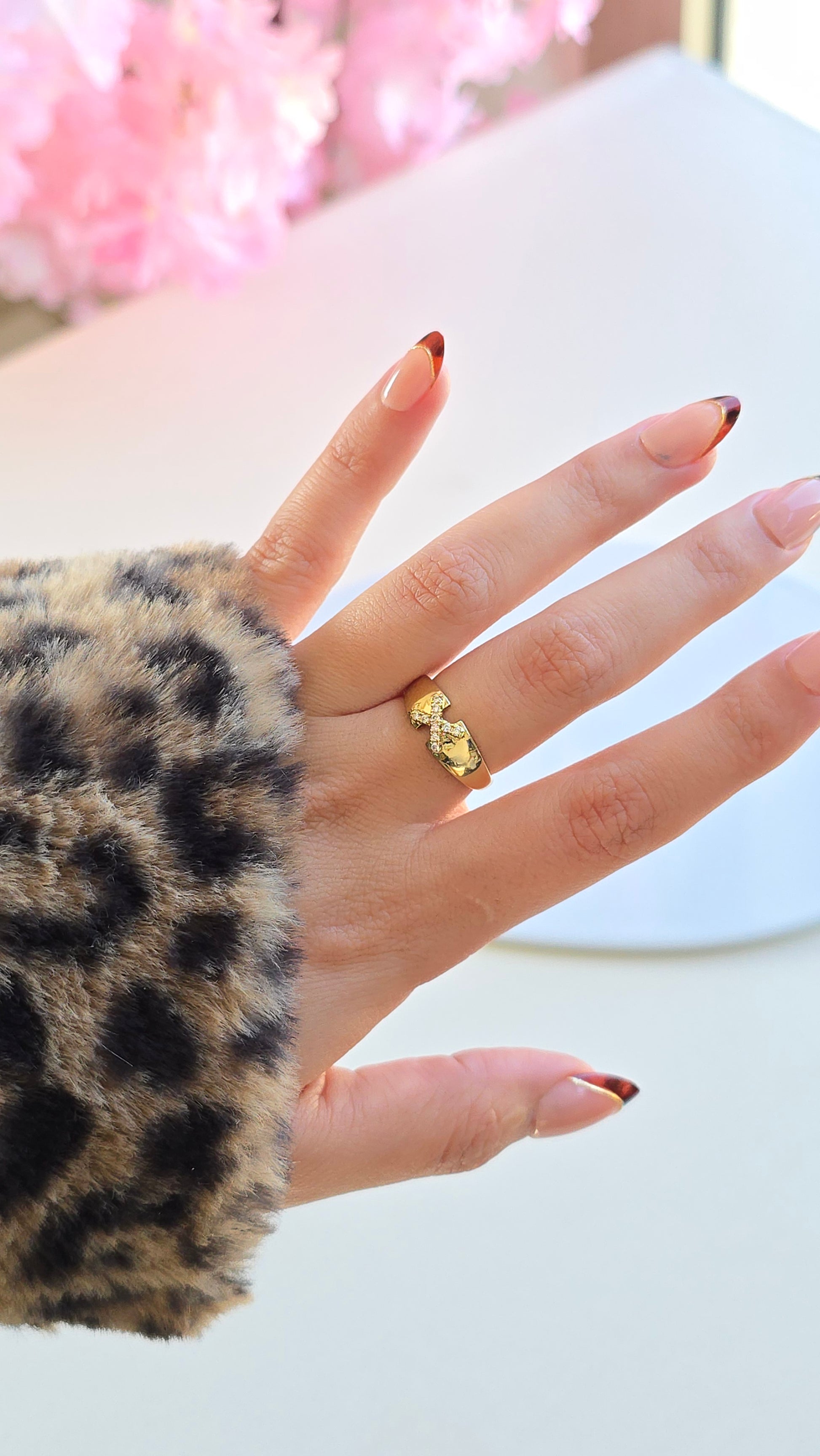Set inoxydable, composé d’une bague et d’un bracelet au design d’or moderne ciselé.