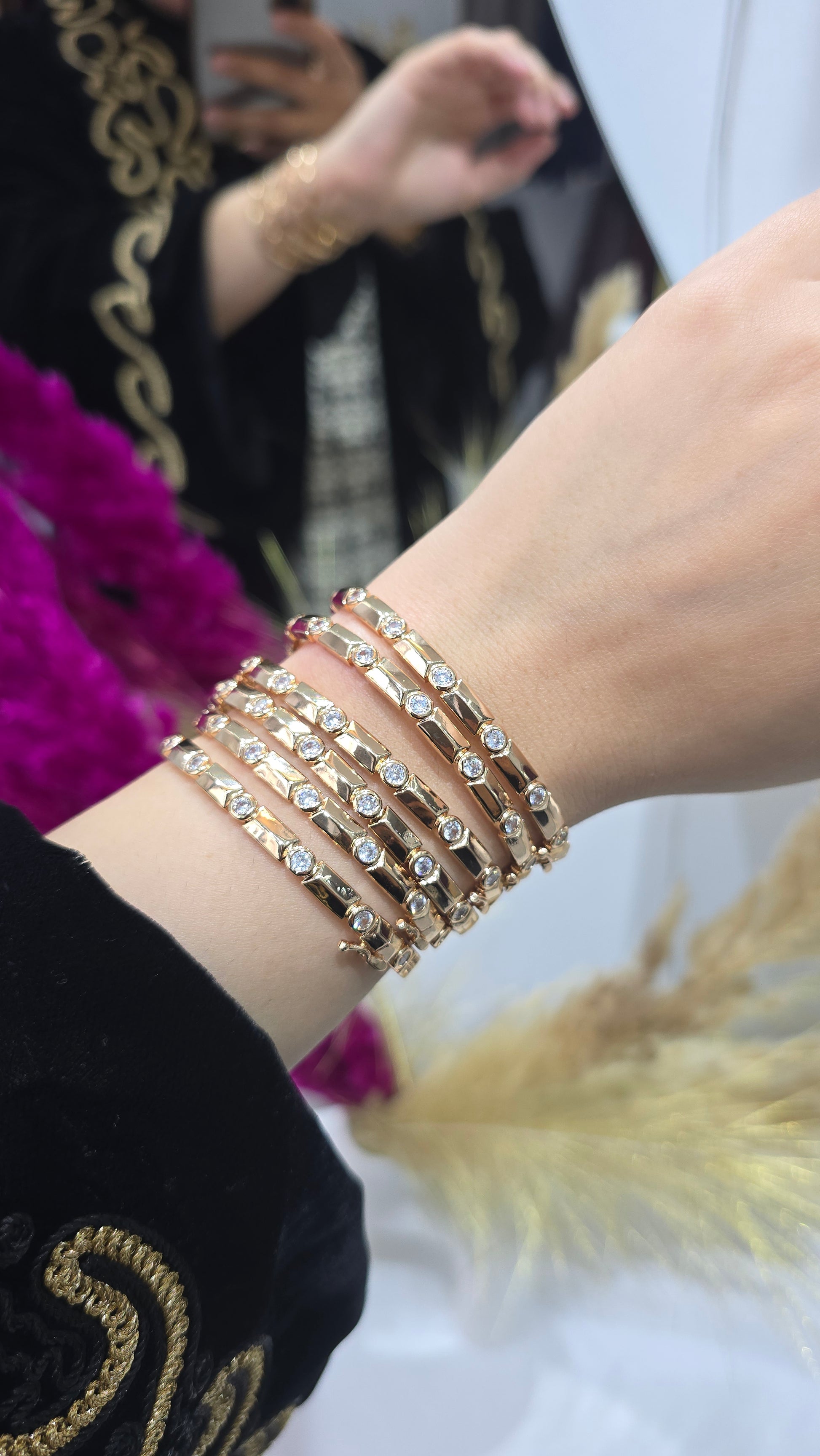 - Bracelets en rose gold, inspirés des modèles en or, avec une finition lumineuse et une fermeture style bijou précieux.