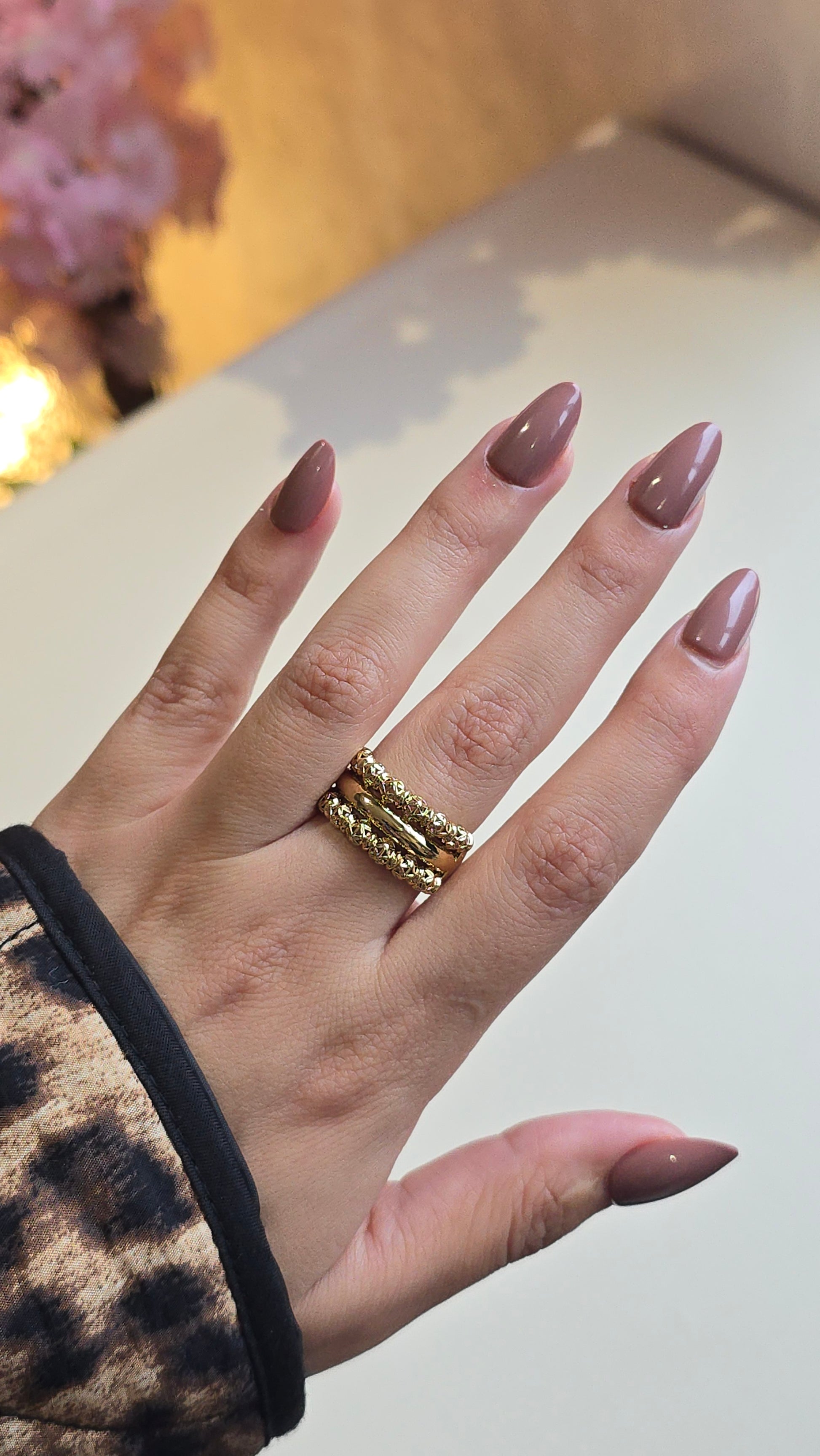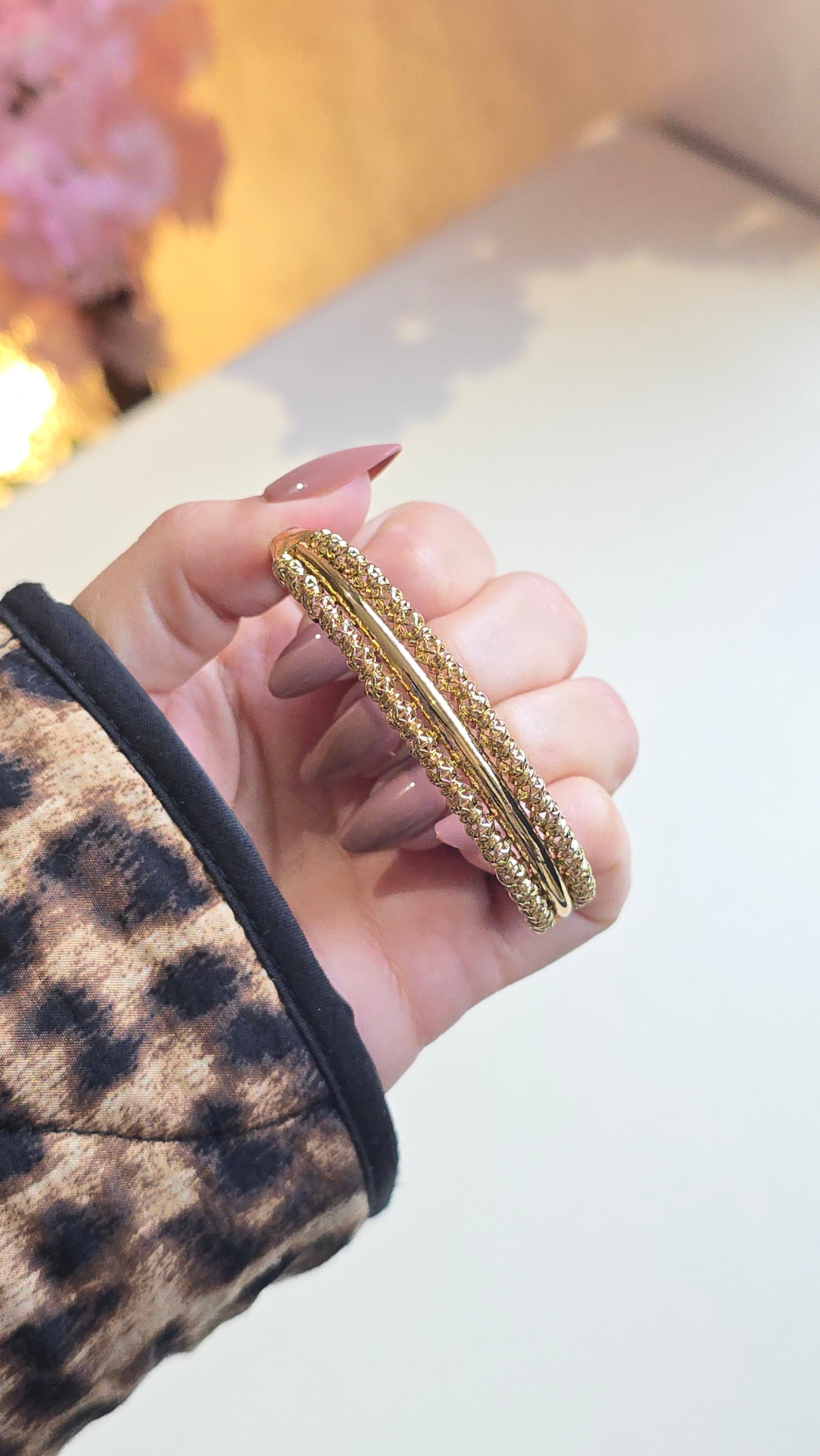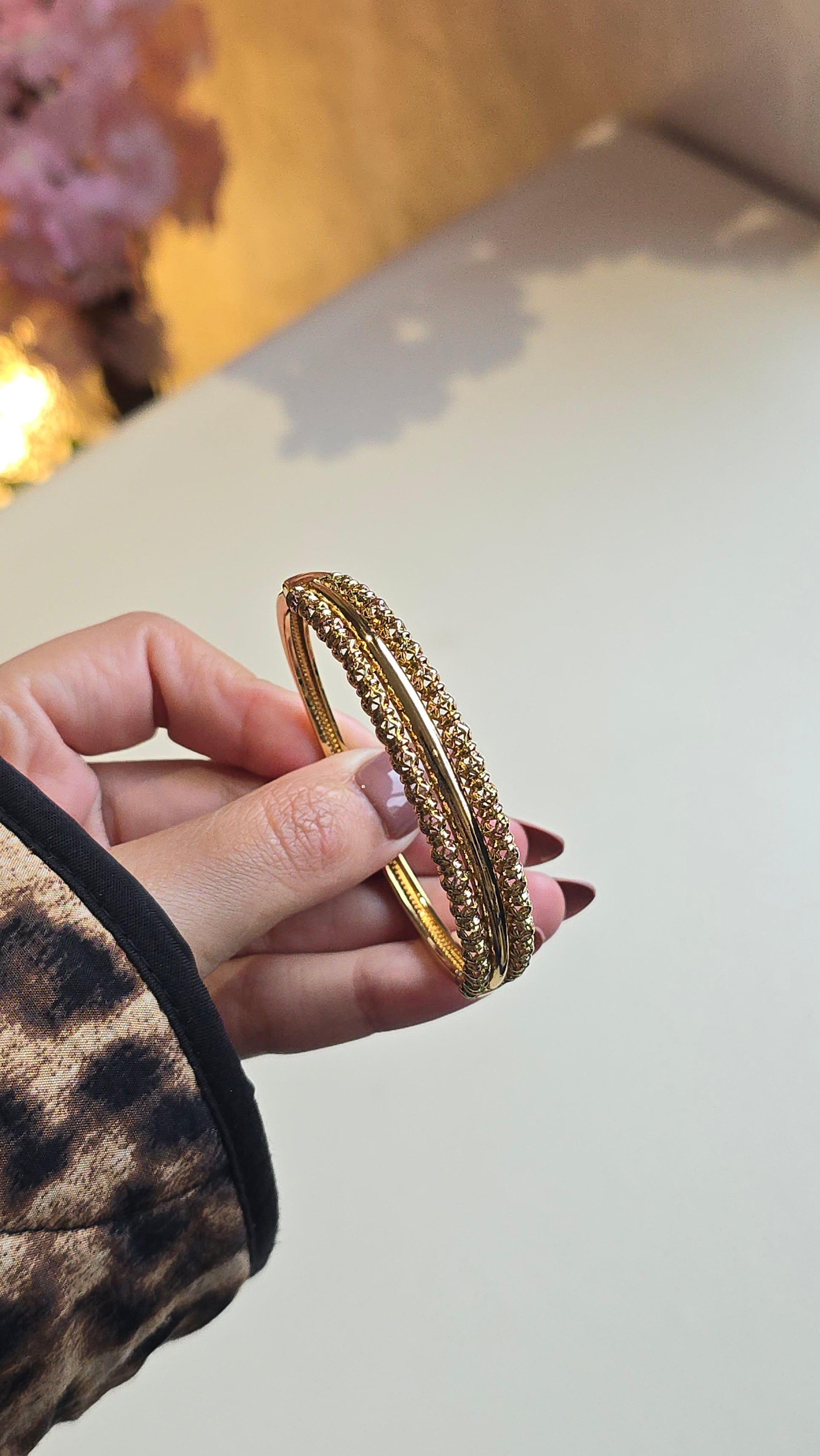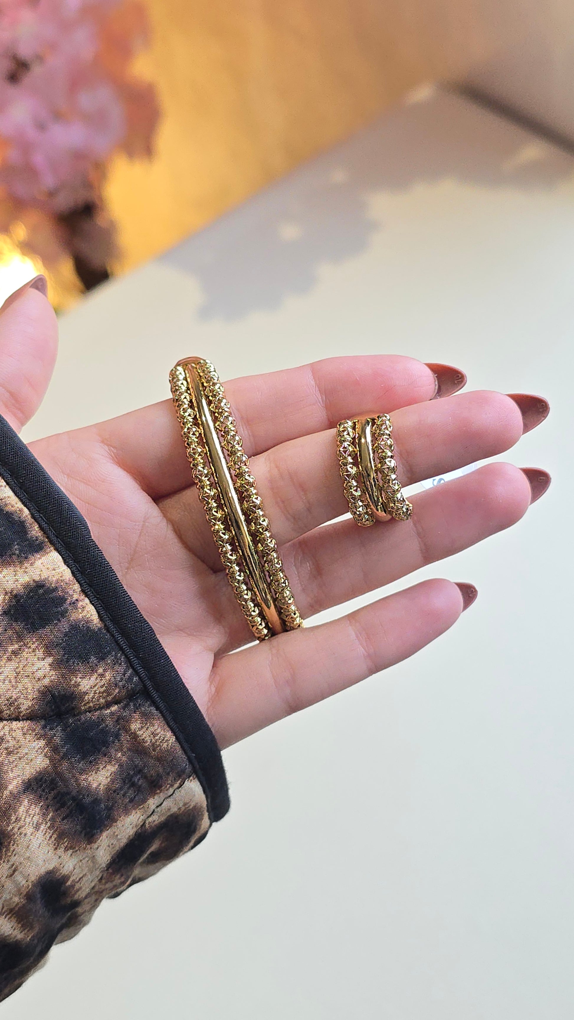 Set traditionnel composé d’une bague et d’un bracelet au design beldi ciselé, inspiré du vrai or.