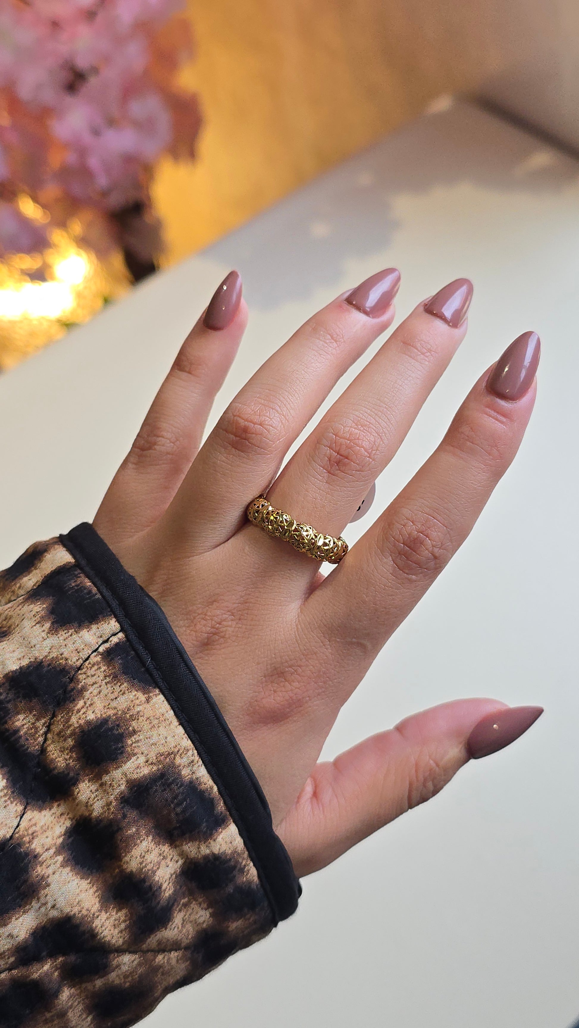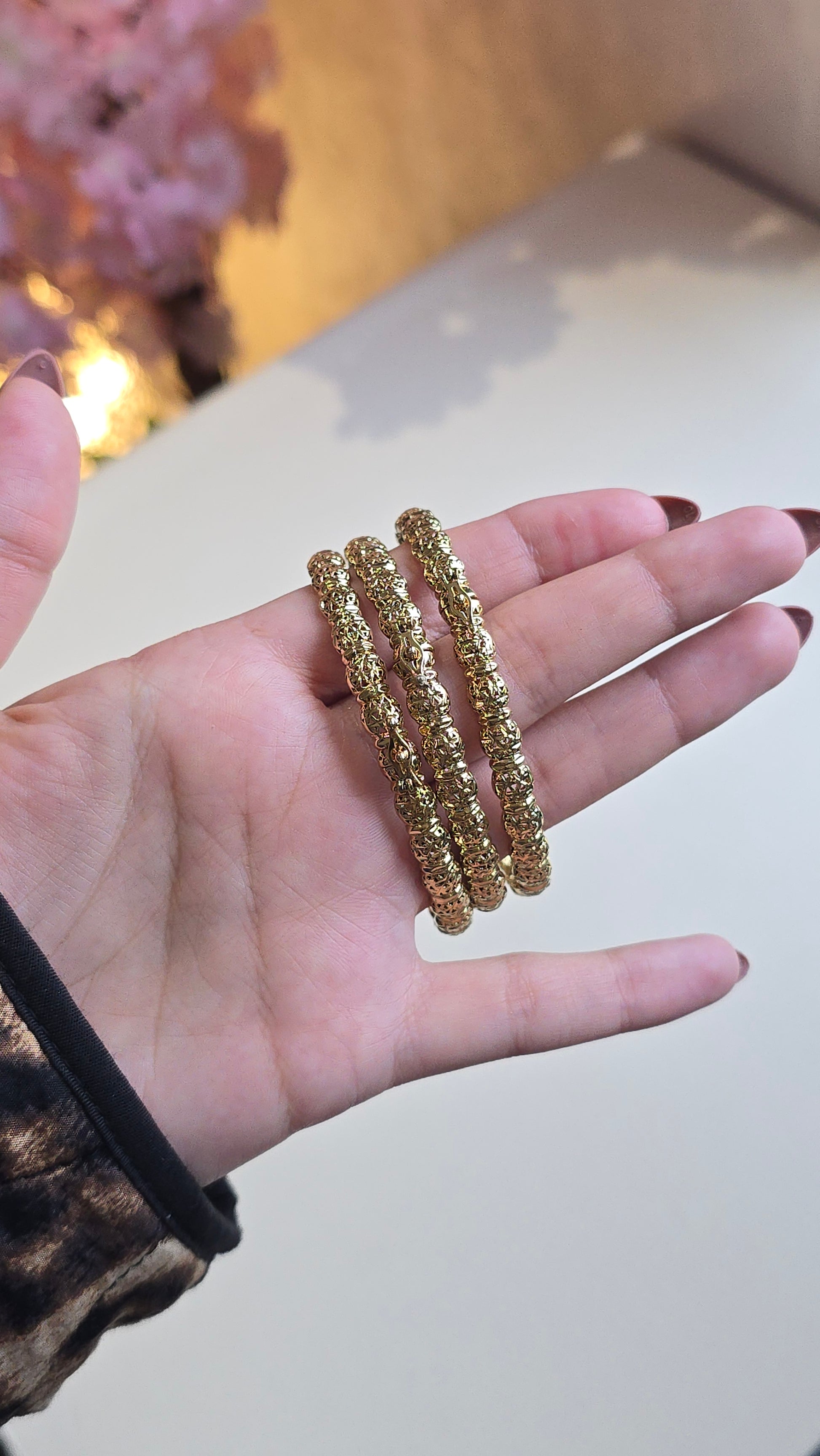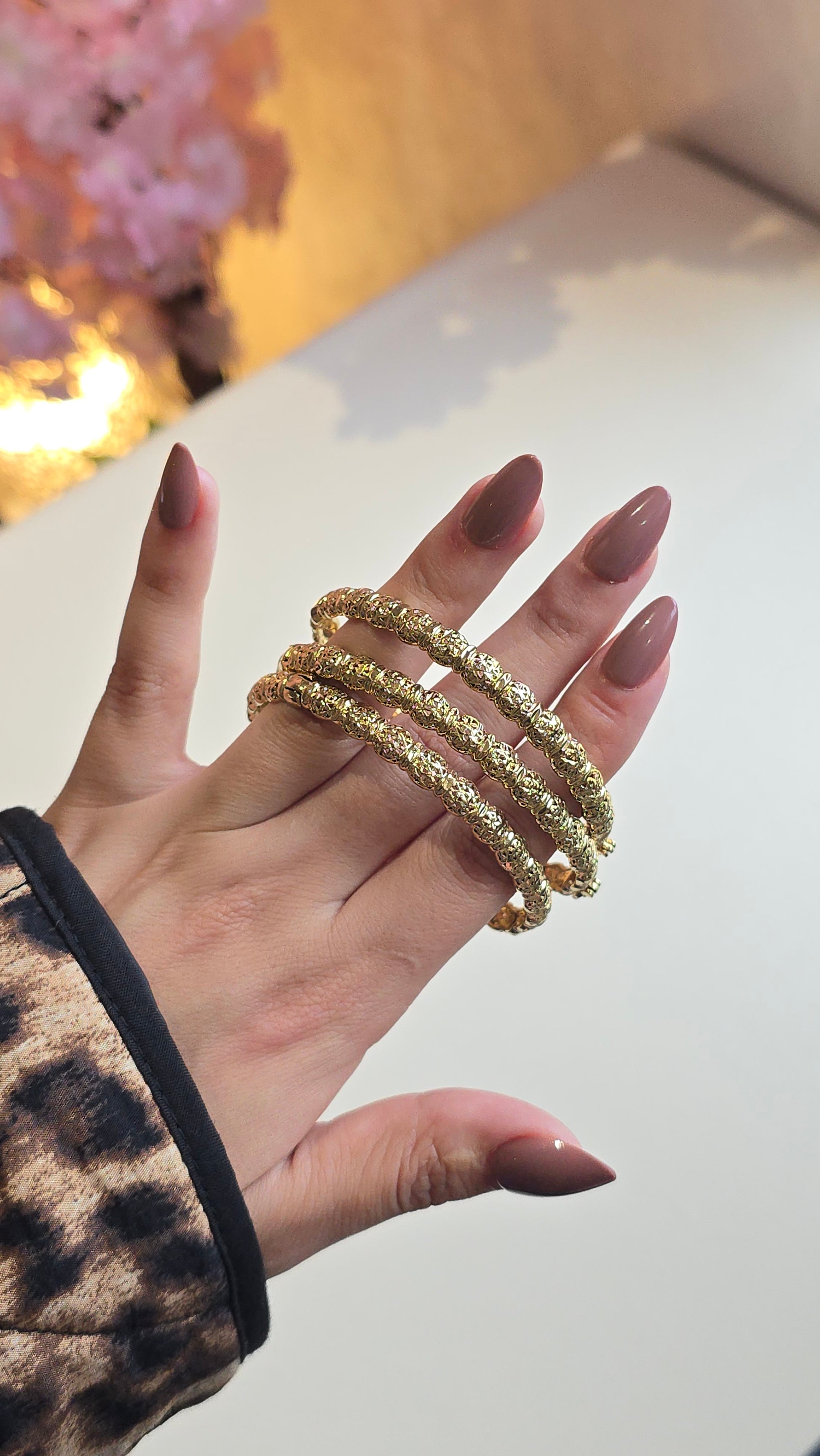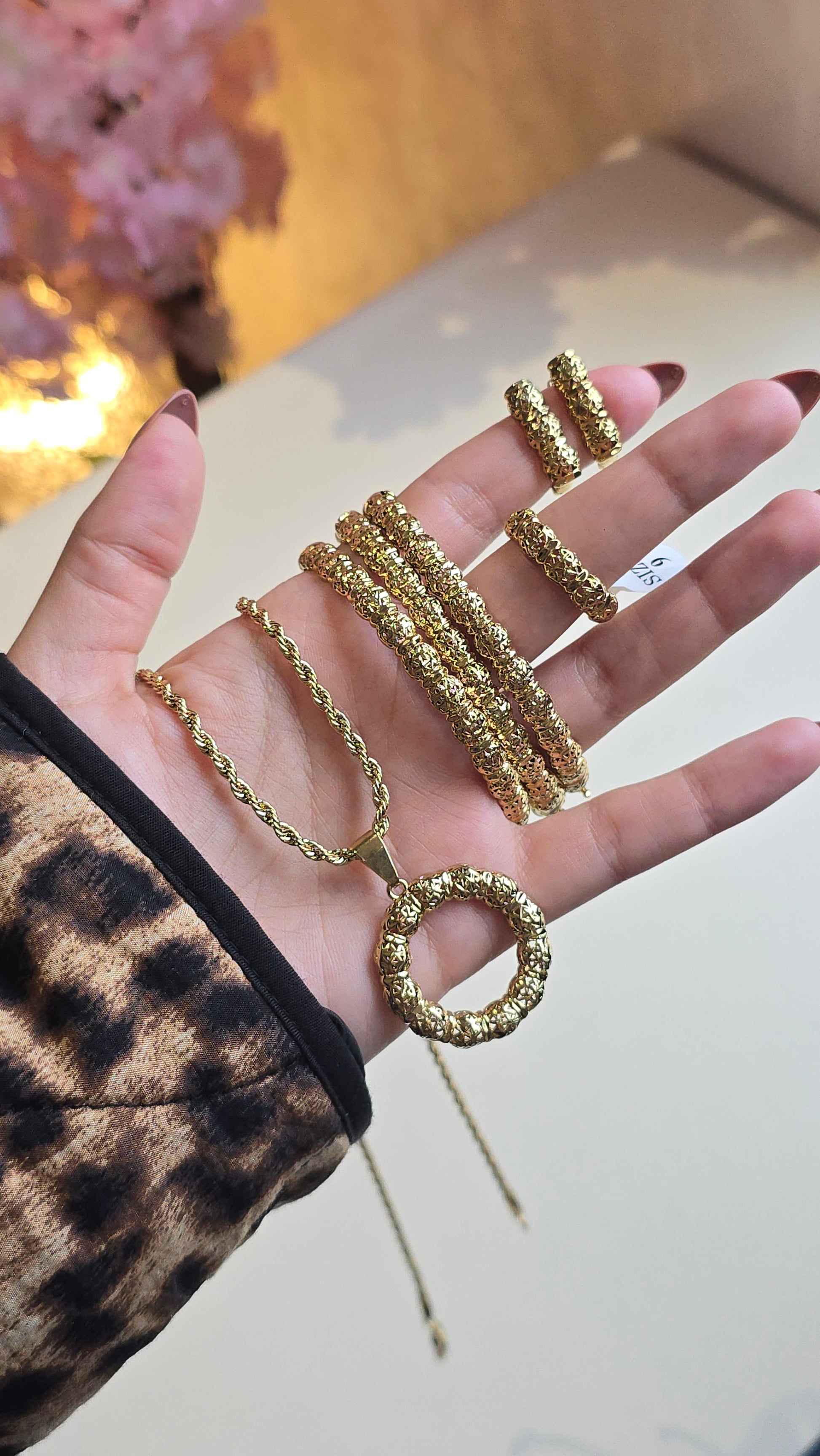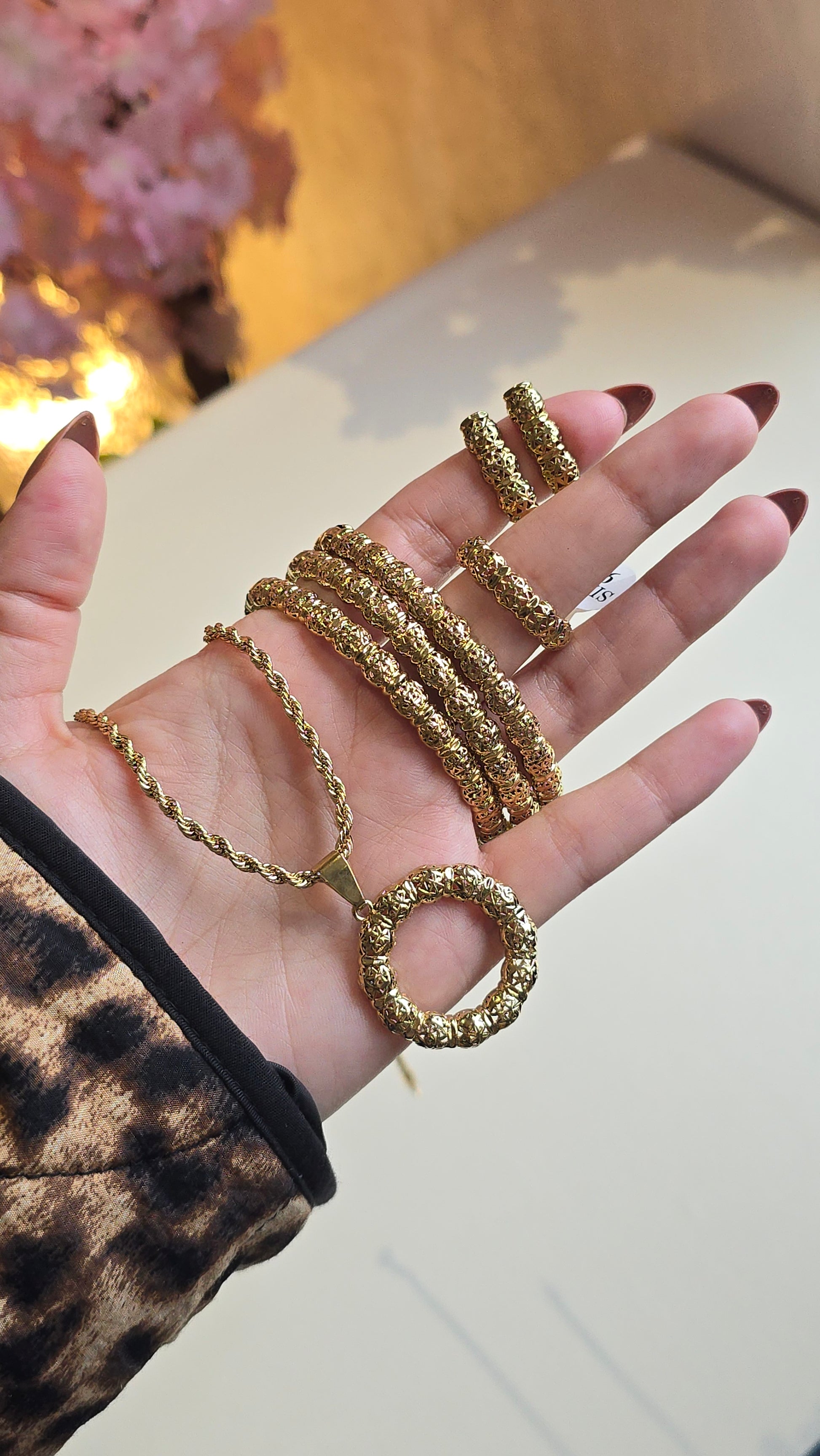 Set traditionnel composé d’une bague et de 3 bracelets, boucles d’oreille et un collier au design beldi ciselé, inspiré du vrai or.